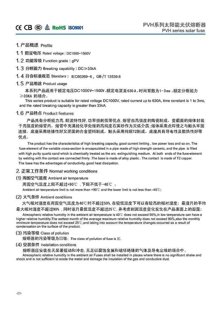 PVH太陽能光伏系統(tǒng)保護(hù)用熔斷體