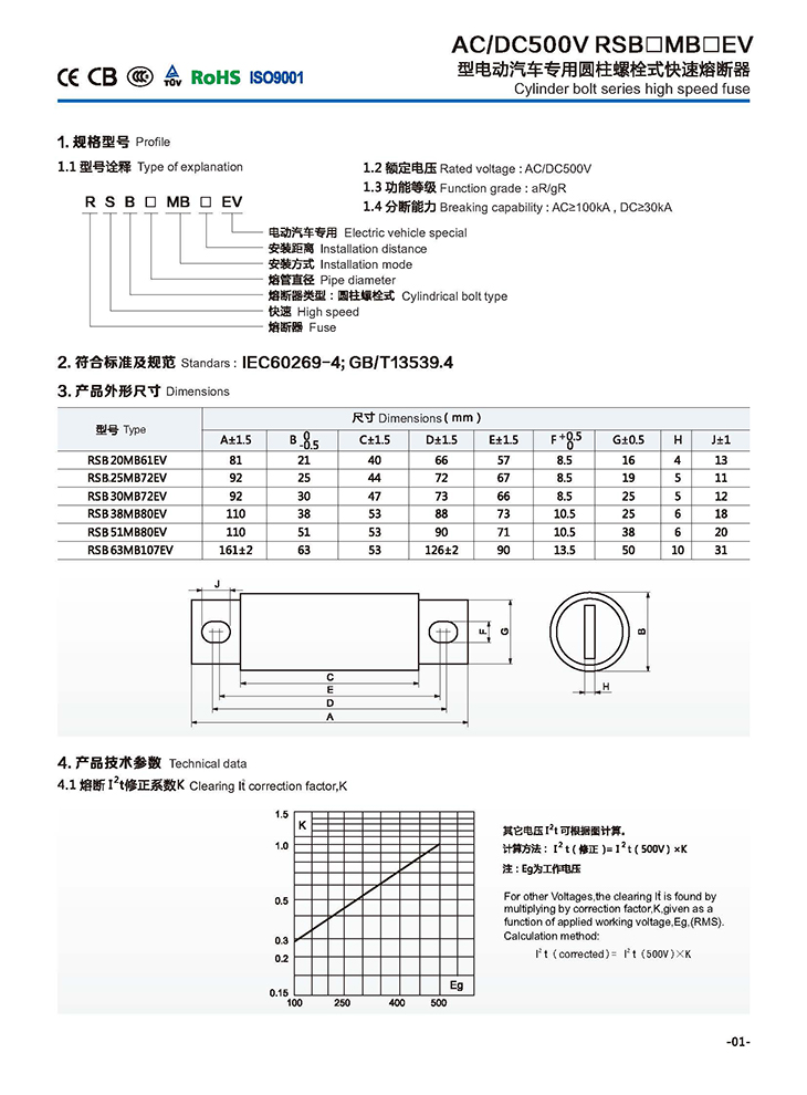電動(dòng)汽車保護(hù)用熔斷器系列